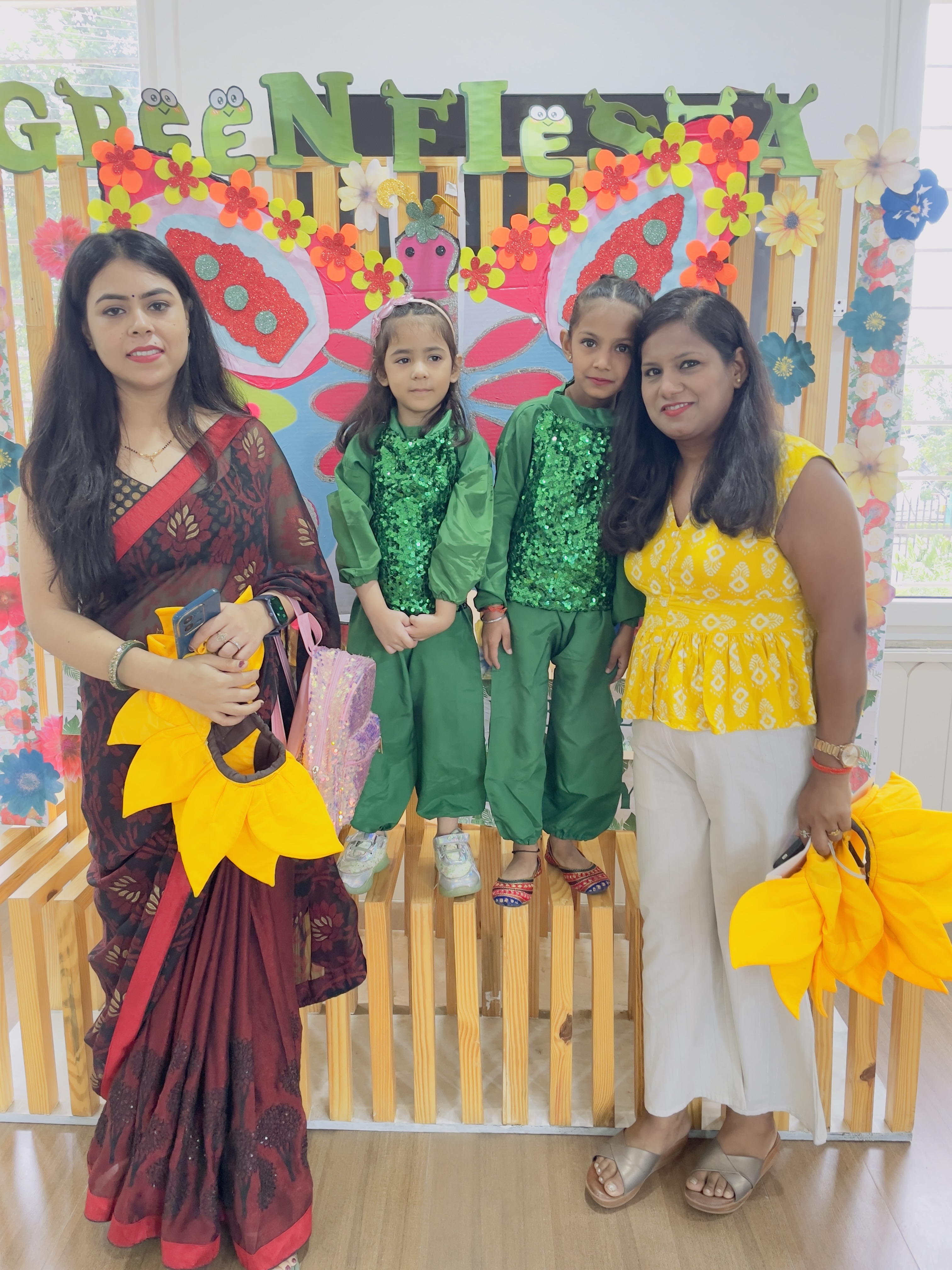 Shree Vidya School came alive with color, joy, and a deep sense of purpose during The Green Fiesta, held on 12th July 2025 from 3:00 PM to 5:00 PM at the school premises. Designed for children aged 0–5 years and their parents, the event celebrated the beauty and importance of nature through the vibrant theme of “Green.” The little ones arrived in charming green outfits, radiating innocence and enthusiasm, while their parents joined in the celebration, making the event a heartwarming display of school-home collaboration.