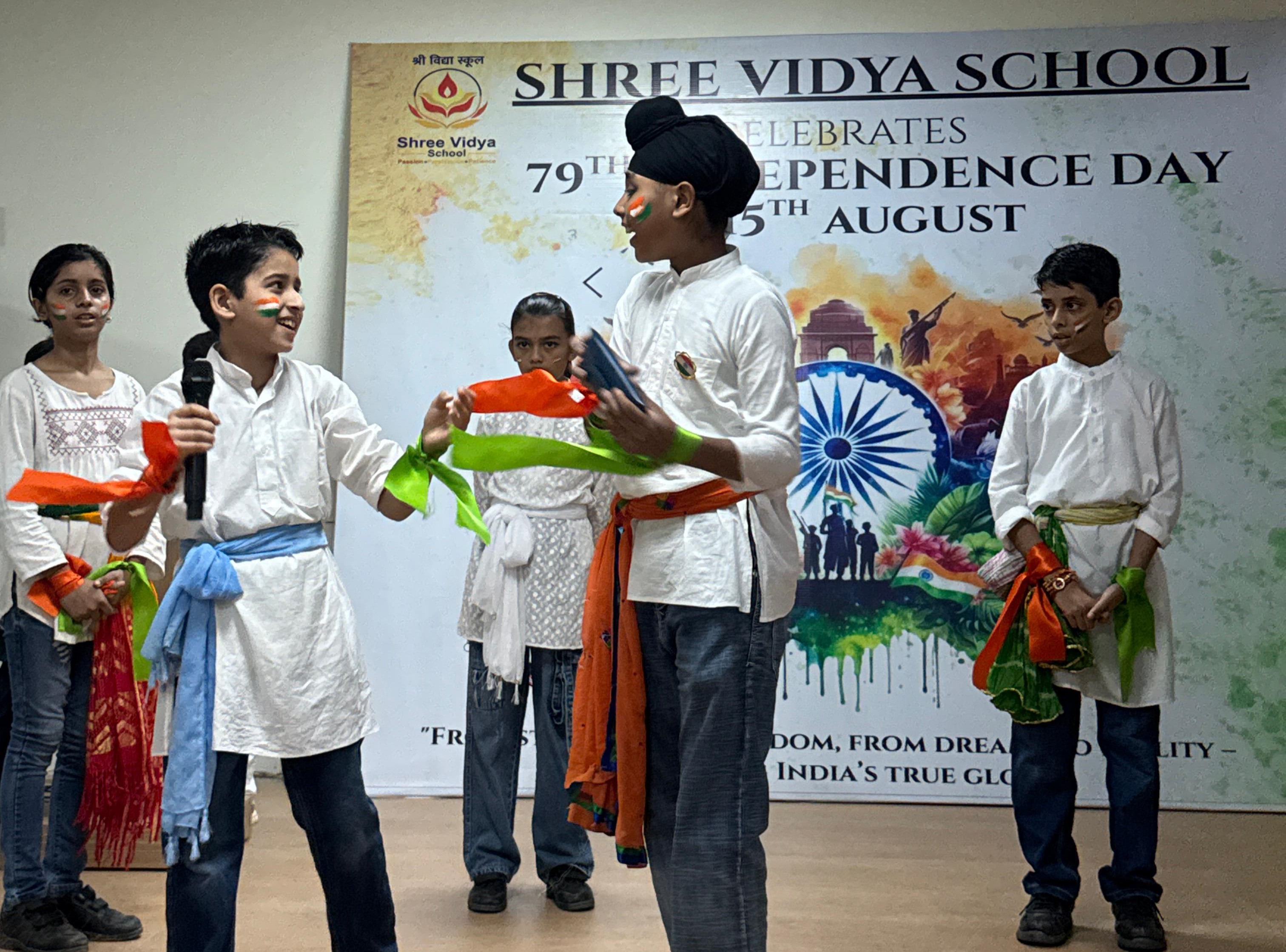 The programme was enriched with vibrant cultural performances by our students. Ekshit and Prisha (UKG) captivated the audience with a delightful patriotic dance. Ramansh (Grade 3), Avni Singh and Avni Raghav (Grade 4), and Nancy (Grade 5) also presented graceful dance performances reflecting their love for the nation.