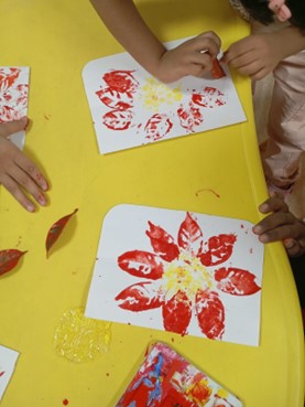 8. Leaf Impression Art: Students press dried leaves on coloured dots in their art files to create unique impressions - an innovative twist on traditional leaf printing.