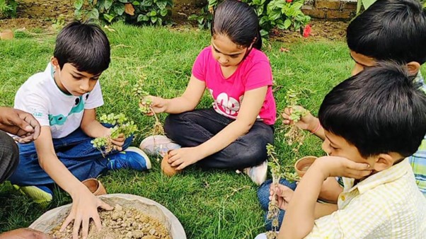 1. For Specially Abled Children: A sensory activity where children can feel, touch, and smell plants in pots to develop empathy and connection towards nature.